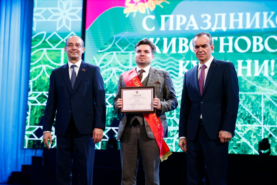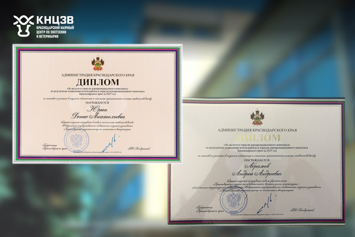 В рамках проведения праздника губернатор Краснодарского края В. И. Кондратьев наградил Дипломом администрации Краснодарского края за активное участие в научном обеспечении и оказании практической помощи животноводству Краснодарского края Юрина Д. А. – руководителя отдела технологии животноводства ФГБНУ КНЦЗВ, кандидата сельскохозяйственных наук; Абрамова А. А. – ведущего научного сотрудникаотдела фармакологии Краснодарского НИВИ – обособленного структурного подразделения ФГБНУ КНЦЗВ, кандидата ветеринарных наук.